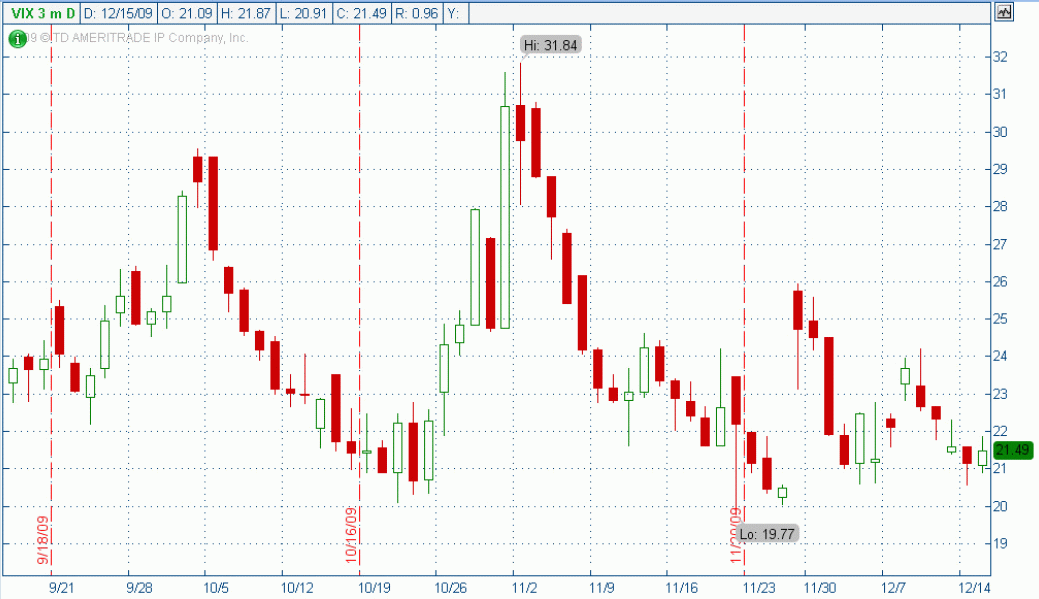 Belisarius is puzzled with large VIX vs. historical volatility divergence (despite some large VIX bearish bets. The VIX is at 21.5, HV at 13. At the moment we could say that options are overpriced having in mind the HV. With earnings season month away I would expect VIX to be better proxy for future volatility.