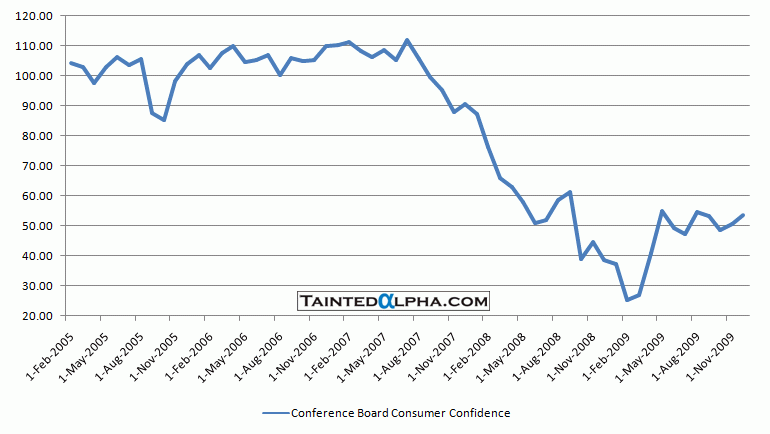 Consumer confidence increased in January to 55.9 vs. December’s 53.6 and a consensus of 53.5.
