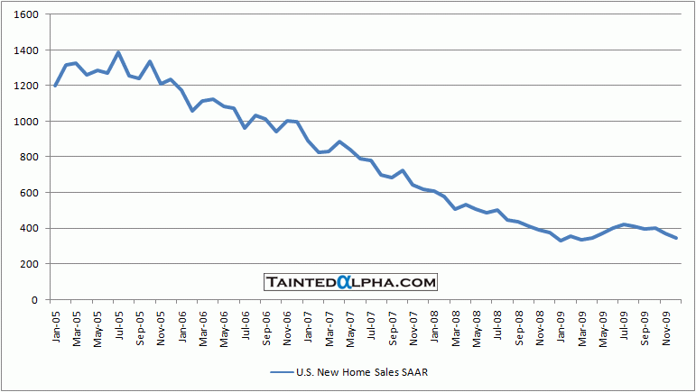 New home sales fell 7.6% in December to 342.000 SAAR vs. revised November figure of 370.000 (revised upwards from 355.000 SAAR) and 370.000 SAAR consensus.