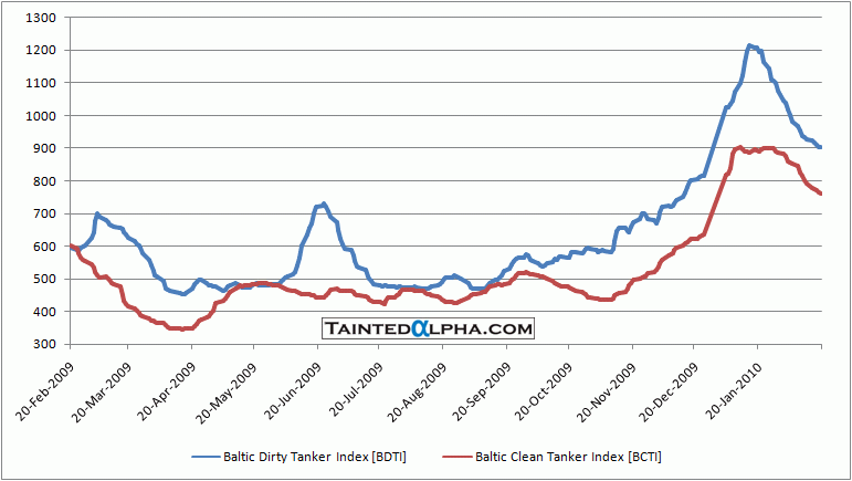 Baltic Dirty Tanker Index fell 2.4% last week while Baltic Clean Tanker Index fell 3.8%. Similar as in dry bulk everybody waits for Chinese buyers/charterers to return to markets. With winter season being nearly over we will probably have a seasonal weakness here till at least April when driving demand kicks in.