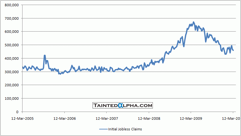 Initial jobless claims fell 7.000 to 462.000. The consensus was at 460.000.