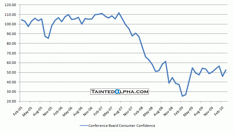Conference Board consumer confidence came out at 52.5 vs. 50 consensus and 46 reading for February.