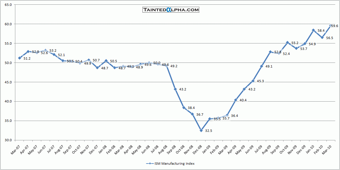 ISM Manufacturing Index came out at 59.6 vs. prior reading of 56.5 and consensus of 56.3. A big positive surprise.