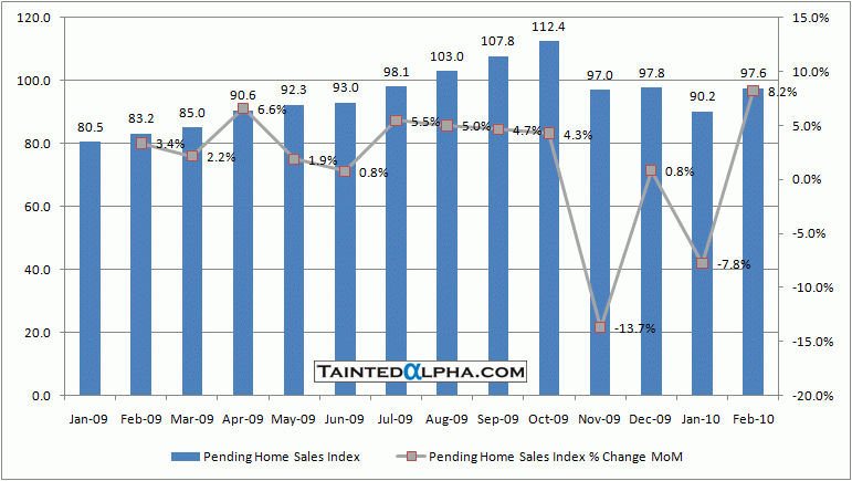 Pending home sales index rose 8.2% in February. This is the single positive data point on U.S. housing in couple of months.