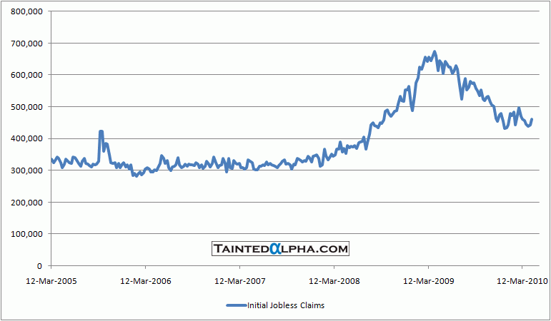 Initial jobless claims came out at 460.000. The consensus was at 435.000. The week before figure was revised higher to 442.000.