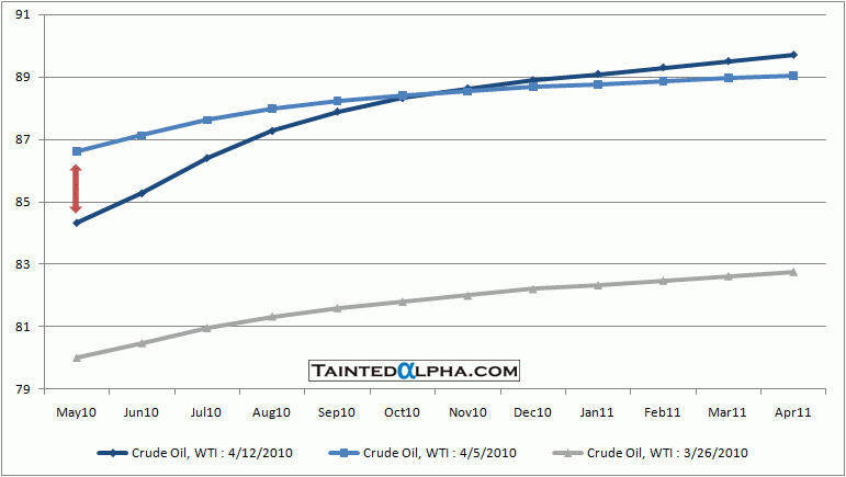 Contango in crude oil futures increased in the last few days, making the roll trade attractive again. This is a clear sign that there is excess supply over demand and that the demand and price expectations are high. Profitable roll trade will bring additional money to the markets making oil price harder to decline.