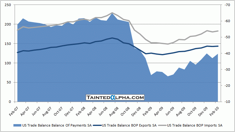 Data point from yesterday. U.S. trade balance for February was reported at $-39.7 billion vs. consensus of $-39 billion and a January reading of $-37.3 billion.