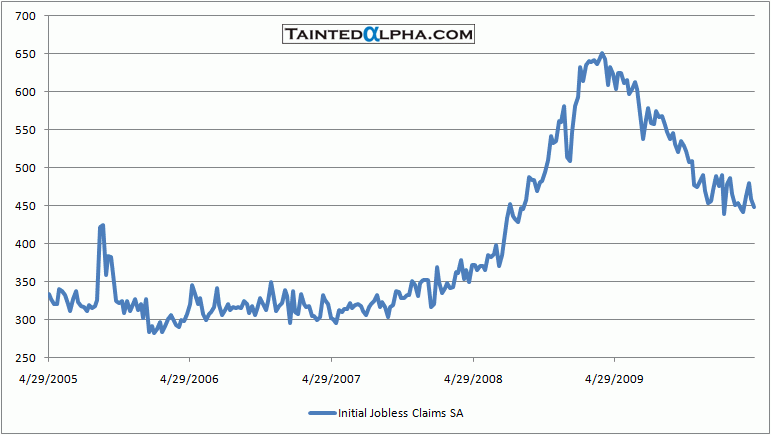 Initial jobless claims were reported at 448.000. The consensus was at 447.000, last week revised higher reading was at 459.000.