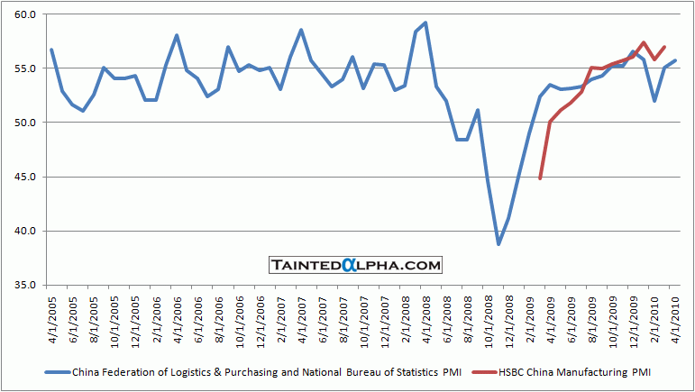 The official China PMI rose from 55.1 to 55.7. A indication of a consolidation in growth.