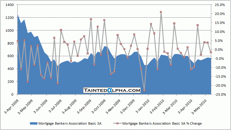 MBA mortgage applications fell 1.5% for week ending May 14, the prior reading was an increase of 3.9%.
