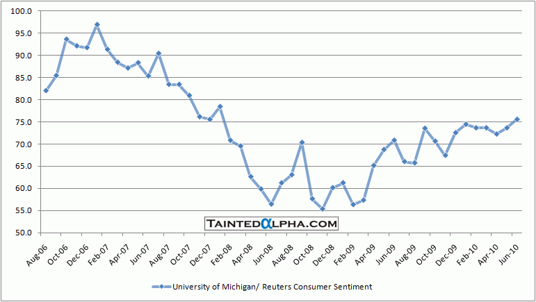 […] UOM/Reuters Consumer Sentiment For June At 75.5 | Tainted Alpha […]