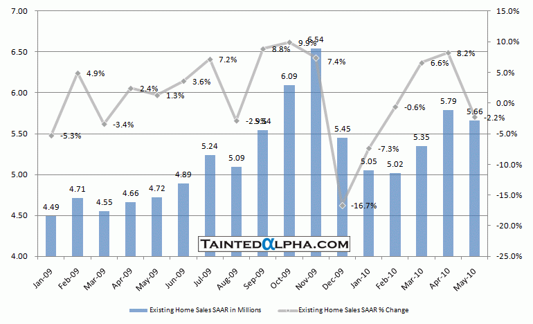 Existing home sales fell 2.2% to 5.66 million SAAR. Consensus was at 6.2 million. A big miss.