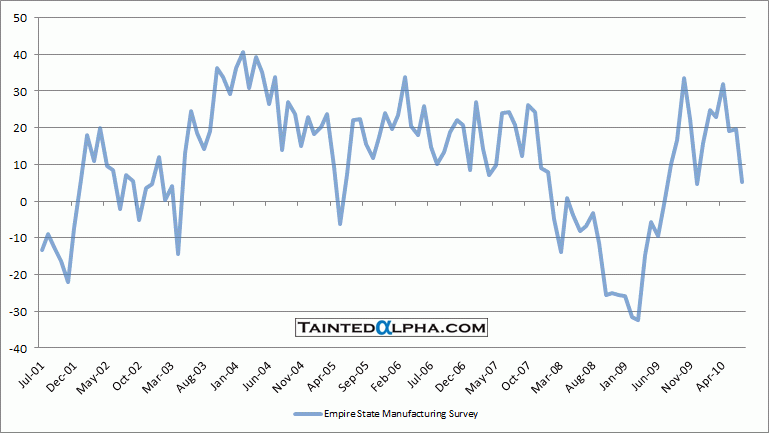 Empire State Manufacturing Survey for July came out at 5.08 vs. 18.0 consensus and 19.57 prior reading. Big disappointment.
