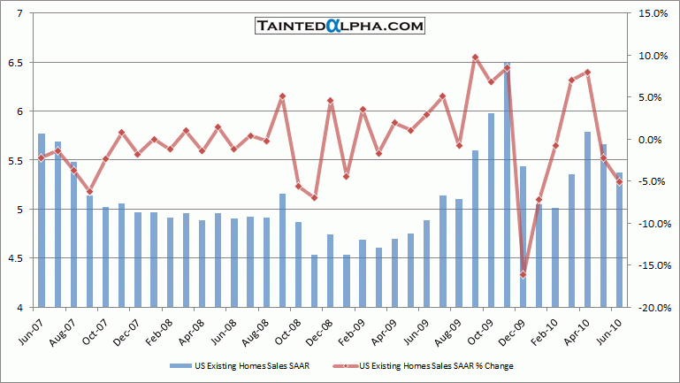 U.S. Existing home sales fell 5.1% to 5.37 million units SAAR. Consensus was at 5.1 million.