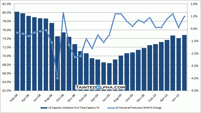 Capacity utilization rose to 74.8% in July vs. 74.1% in June and consensus of 74.6%.