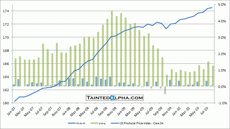 Food & energy taken out U.S. producer price index rose 0.1% in August. The consensus was also at 0.1%, prior reading at 0.3%. On year level core PPI is up 1.3%.