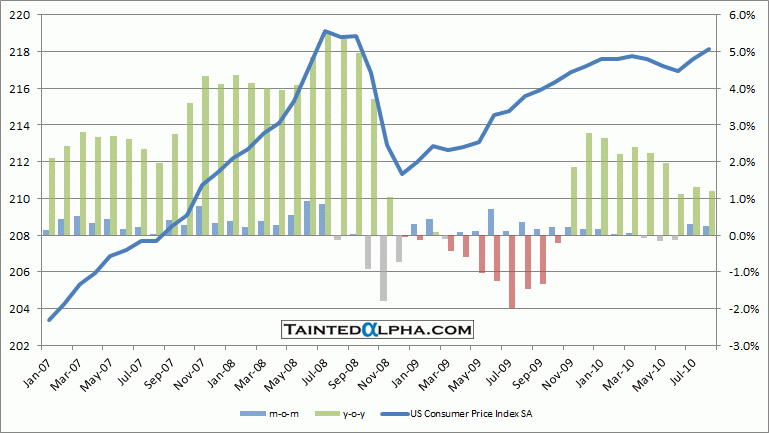 U.S. consumer price index rose 0.3% in August, right at the consensus. July reading was also 0.3%.