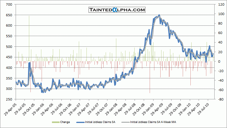 Initial jobless claims in the U.S. were reported at 465.000. The consensus was at 450.000, last week revised (up 3.000) reading was at 453.000.