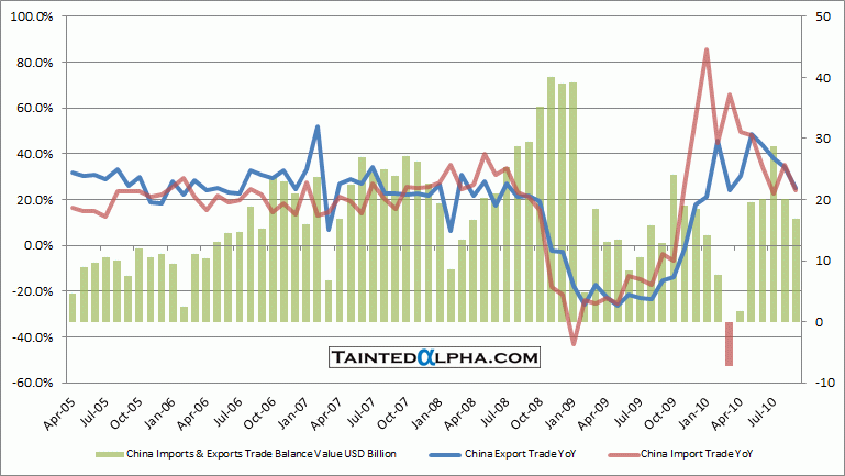 China trade balance was reported at USD 16.9 billion vs. USD 20.0 billion in August. Export and import growth were running at 25.1 and 24.1 percent.