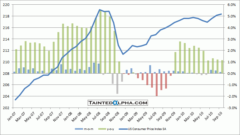 U.S. consumer price index rose 0.1% in September vs. 0.2% consensus and August reading of 0.3%.