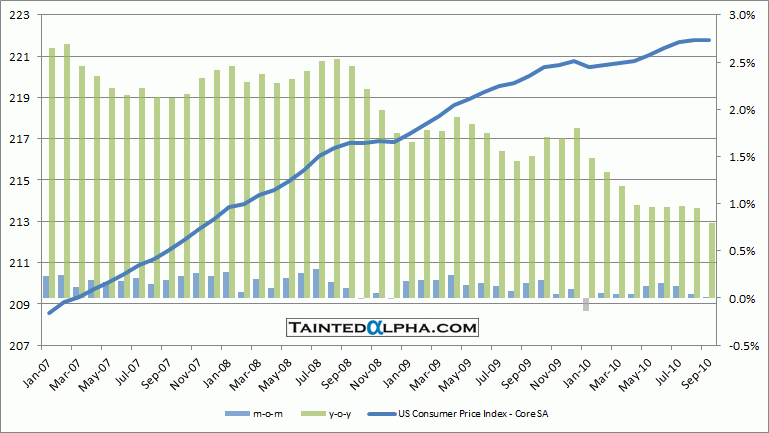 Consumer price index fell less food & energy came out unchanged. September reading was also at 0.0%. The consensus was at 0.1%.