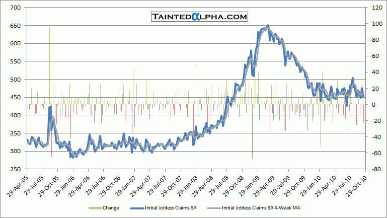 Initial jobless claims in the U.S. were reported at 452.000. The consensus was at 455.000, last week revised (up 13.000) reading was at 475.000.