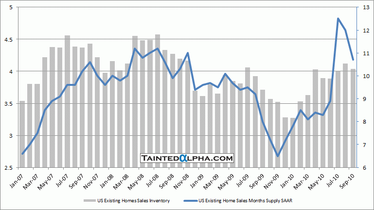 Total housing inventory is at 4.04 million units down from 4.12 million in August. Months supply fell from 12.0 to 10.7 months.