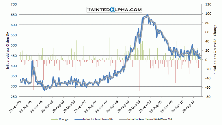 Initial jobless claims in the U.S. were reported at 439.000. The consensus was at 441.000, last week revised (down 3.000) reading was at 437.000.