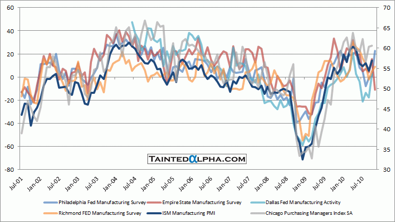 Chicago Purchasing Managers Index, Dallas FED Manufacturing Activity, Empire State Manufacturing Survey, ISM Manufacturing Index, Philadelphia Fed General Business Conditions Index, Richmond FED Manufacturing Survey
