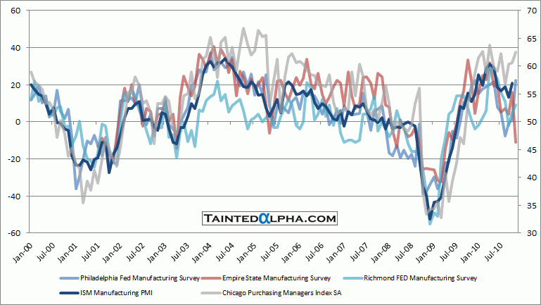 Chicago Purchasing Managers Index, Empire State Manufacturing Survey, ISM Manufacturing Index, Philadelphia Fed General Business Conditions Index, Richmond FED Manufacturing Survey