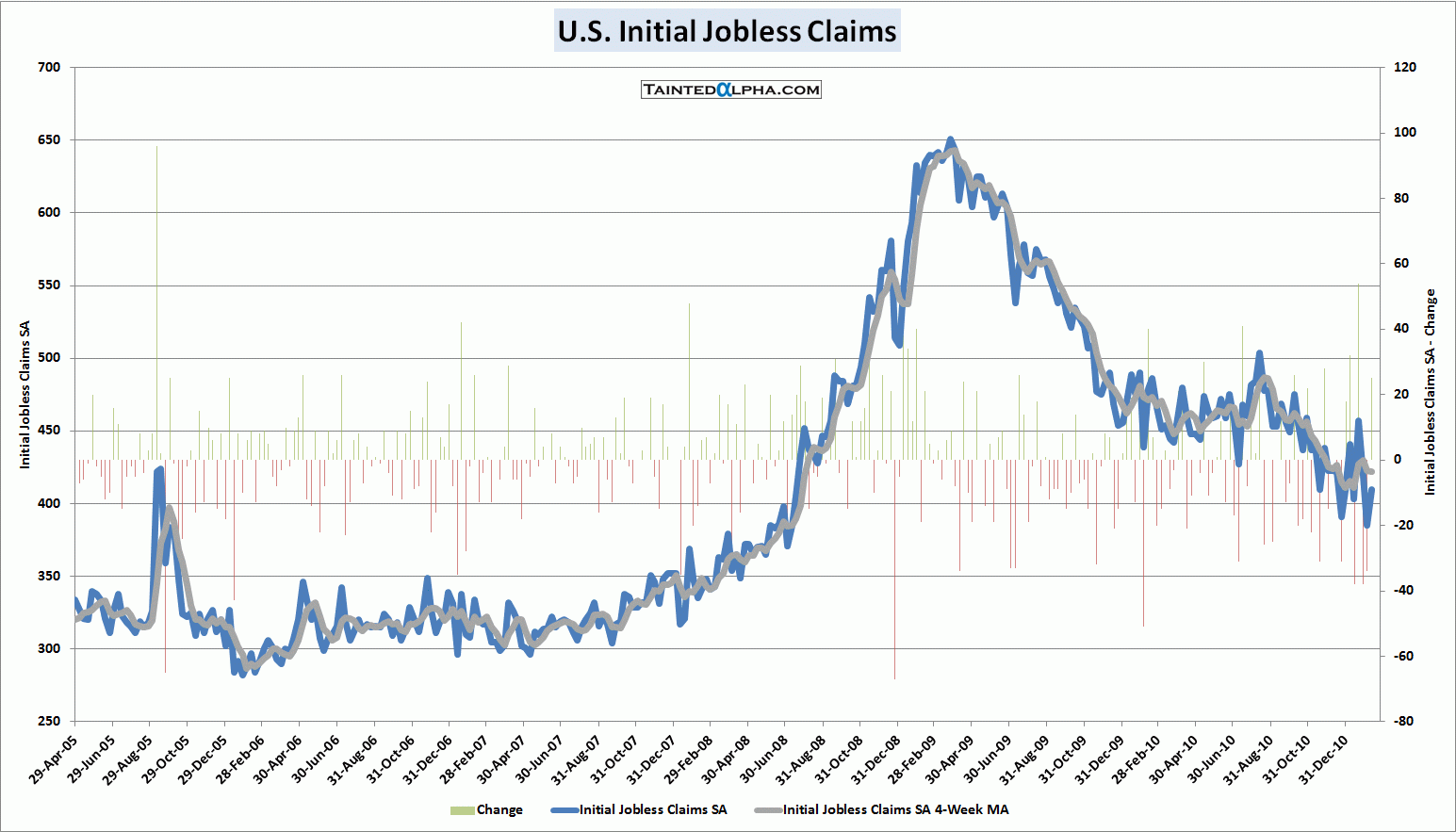 Initial jobless claims in the U.S. were reported at 410.000 vs. 400.000 consensus; last week revised (up 2.000) reading was at 385.000.