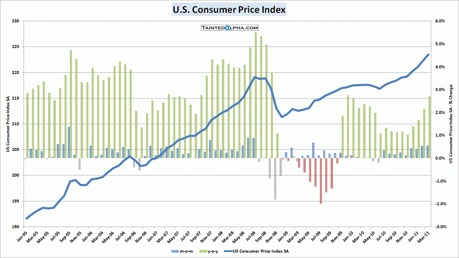 Year-on year inflation is rising, but nowhere near alarming rates (jet).