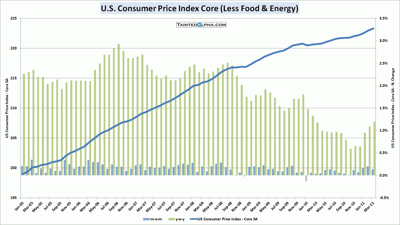 U.S. consumer price index rose 0.5% in March vs. 0.5% consensus and February reading of also 0.5%. On year level CPI inflation is running at 2.7%.