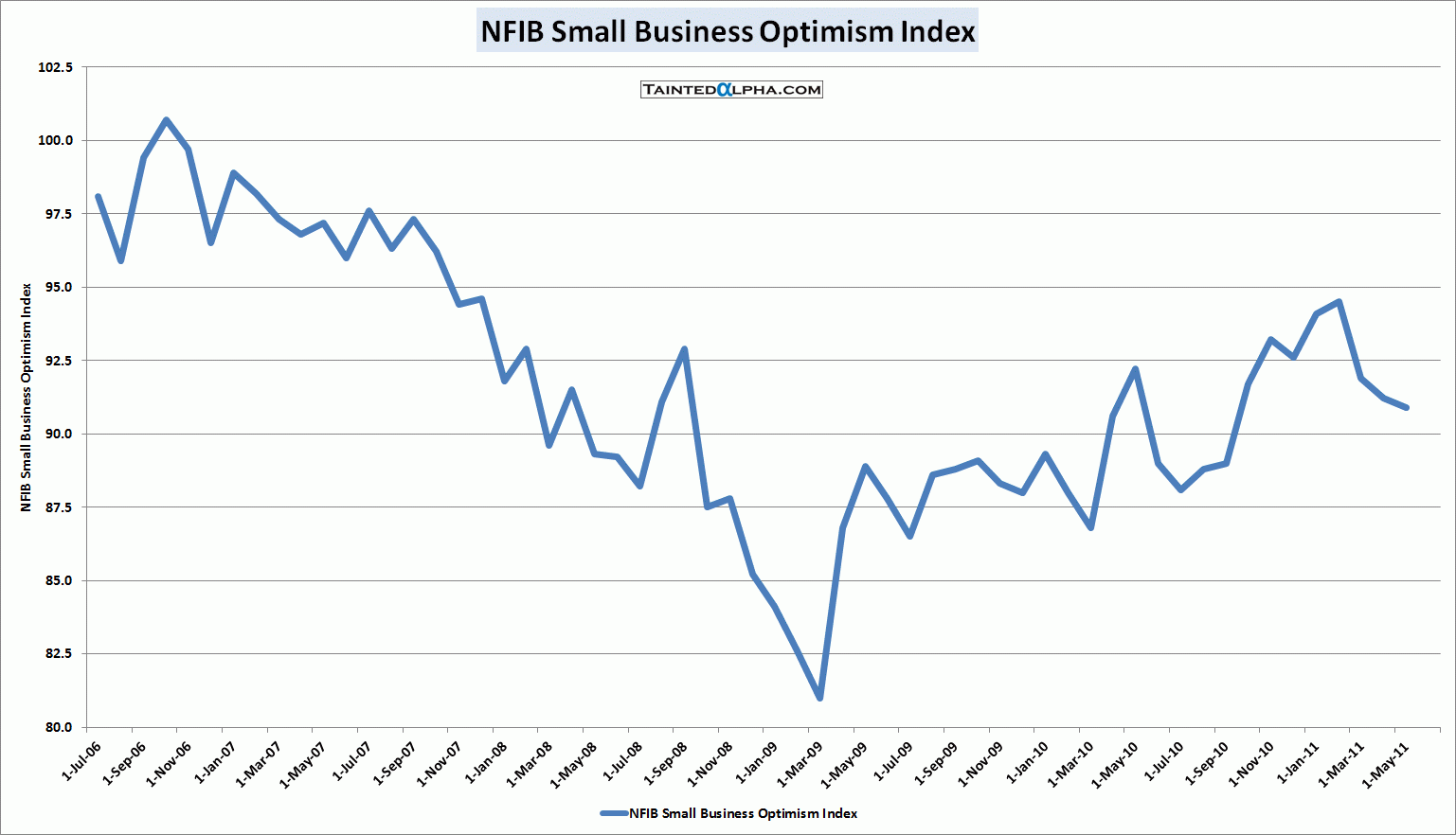 NFIB Small Business Optimism Index For May At 90.9