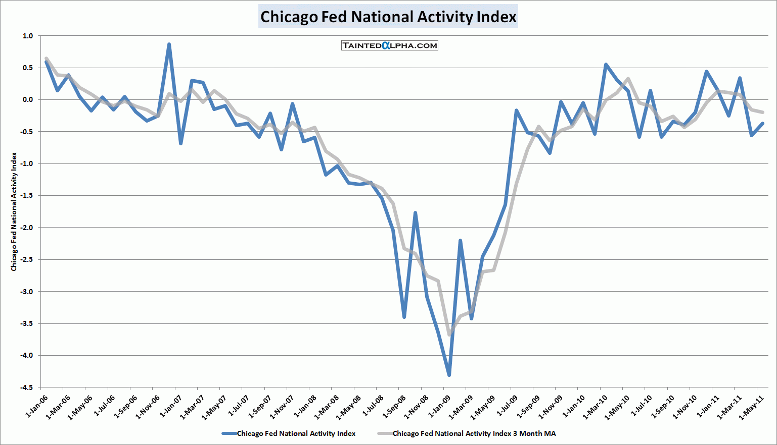 Chicago Fed National Activity Index for May was reported at -0.37 vs. revised April reading of -0.56. Chicago Fed National Activity Index 3-month moving average is at -0.19.