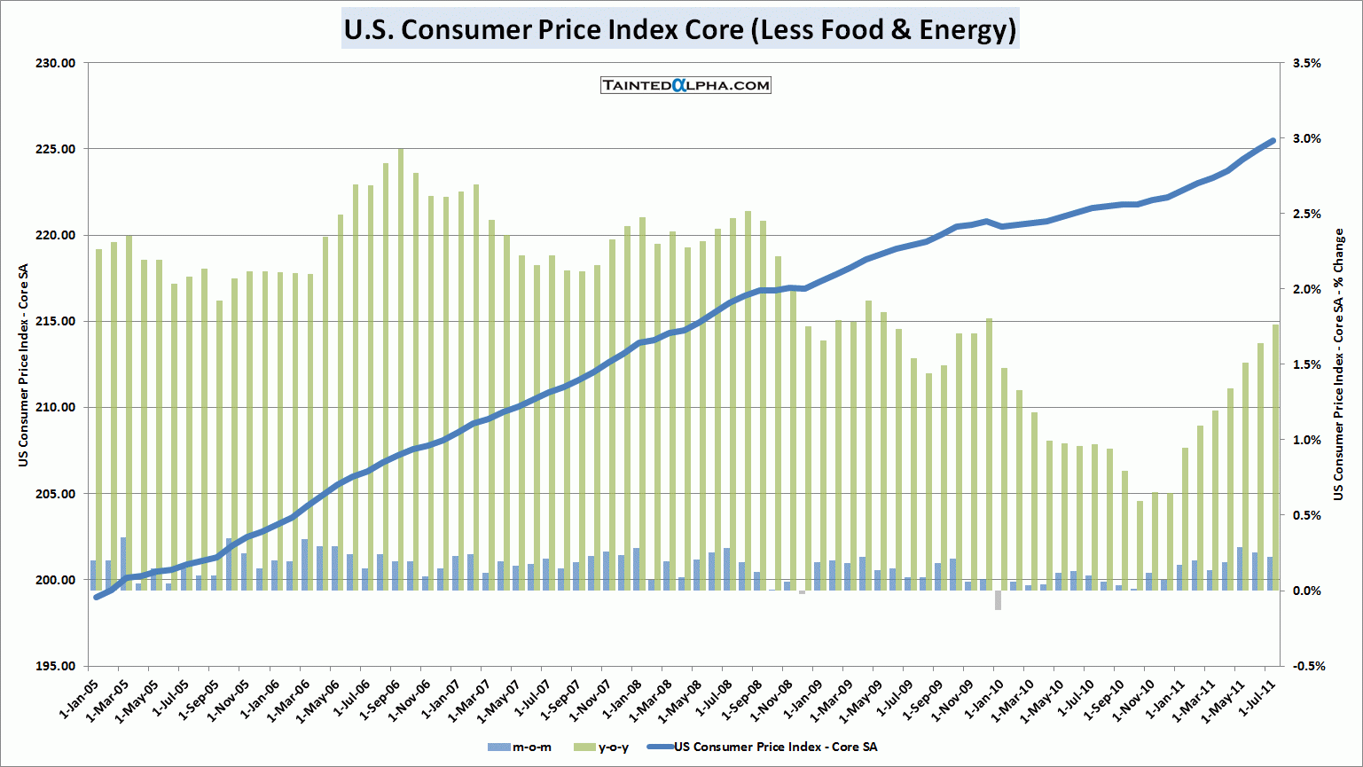 U.S. consumer price index rose 0.5% in July vs. 0.2% consensus and June reading of -0.2%. On year level CPI inflation is running at 3.6%.