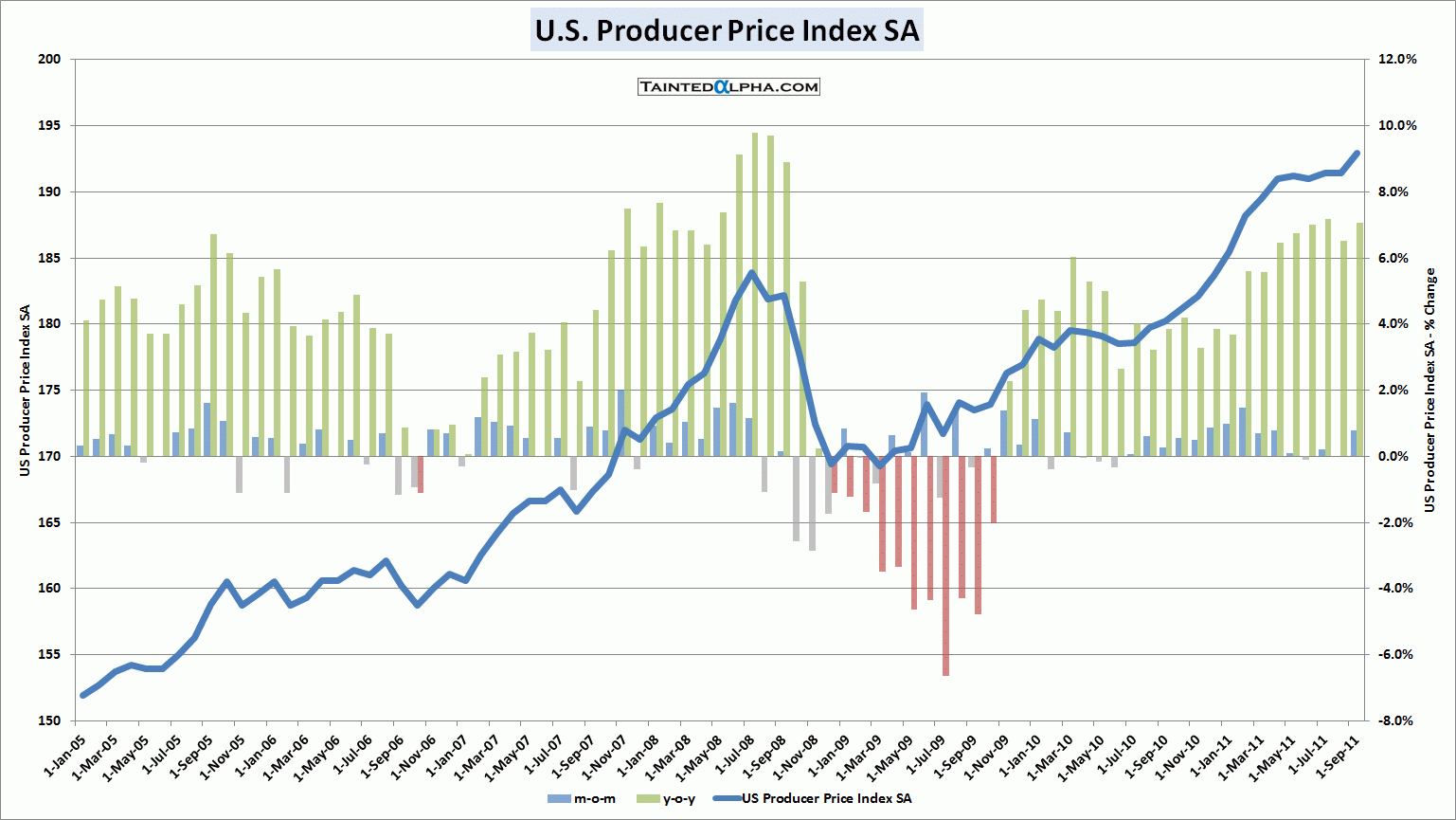 U.S. producer price index rose 0.8% in September vs. 0.2% consensus. August reading was at 0.0%. On year level PPI is up 7.0%.