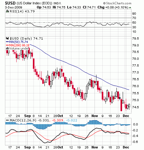 Well I must admit that I don’t have a clue what’s happening in the markets now. The markets opened positive on large positive surprise in non-farm payrolls and in mid of trading everything reversed. Three reasons come to my mind: first is a deeper look in unemployment numbers; the second one would be the new low in Nakheel bond indicating a stall/collapse in Dubai World debt restructuring efforts and the third would be distorted correlations at opening today that disoriented algorithm driven trading.