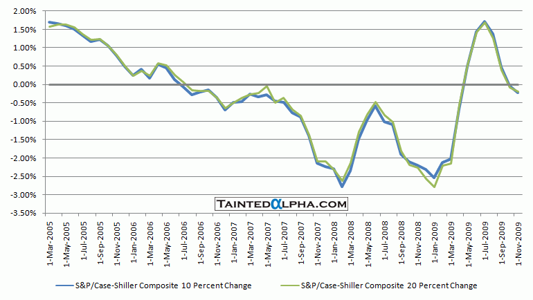 Both S&P/Case-Shiller Composite 10 and S&P/Case-Shiller Composite 20 fell 0.2% in November.