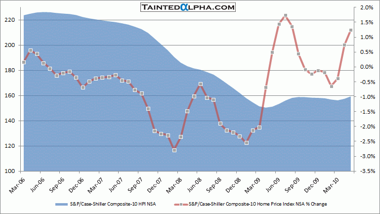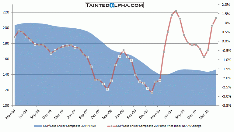S&P/Case-Shiller HPI 10 city composite rose 1.7% in May; S&P/Case-Shiller 20 HPI composite rose 1.3% in May.
