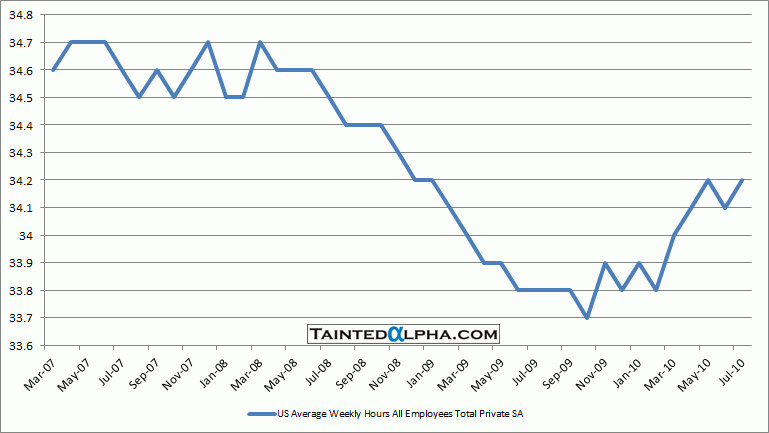 Average weekly hours worked for private employees rose 0.2% to 34.2.
