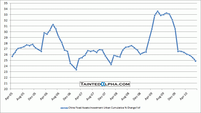 China fixed asset investments rose 24.9% in July; the consensus was at 25.3%, June reading was at 25.5%. This is the result in monetary expansion slowing down.