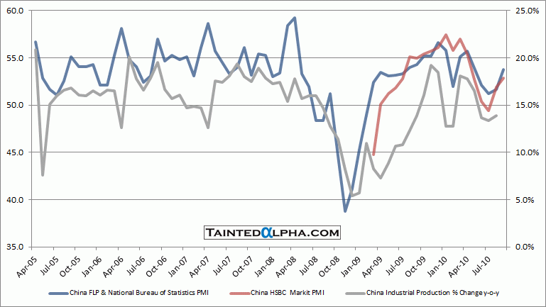 China Federation of Logistics & Purchasing and National Bureau of Statistics PMI rose from 51.7 to 53.8.