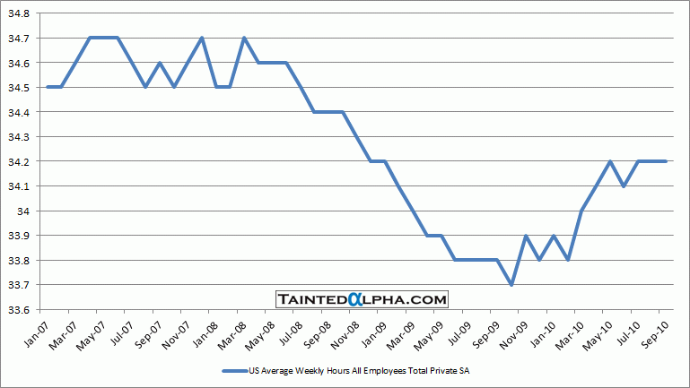 Average weekly hours worked for private employees remain unchanged 34.2.
