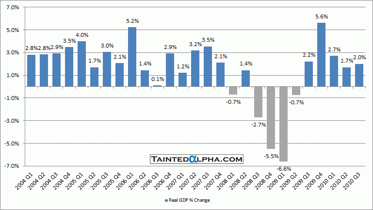 U.S. GDP growth for Q3 was reported at 2.0%, right at consensus. Q2 reading was at +1.7%.