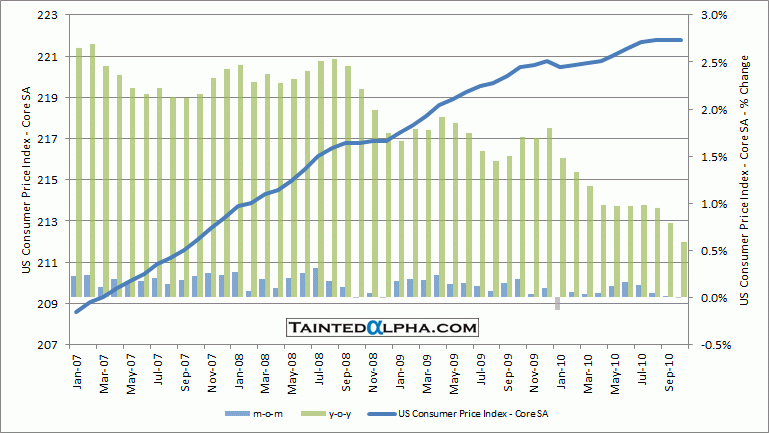 Consumer price index fell less food & energy came out unchanged. September reading was also at 0.0%. The consensus was at 0.1%. On year level CPI inflation is running at 0.6%.
