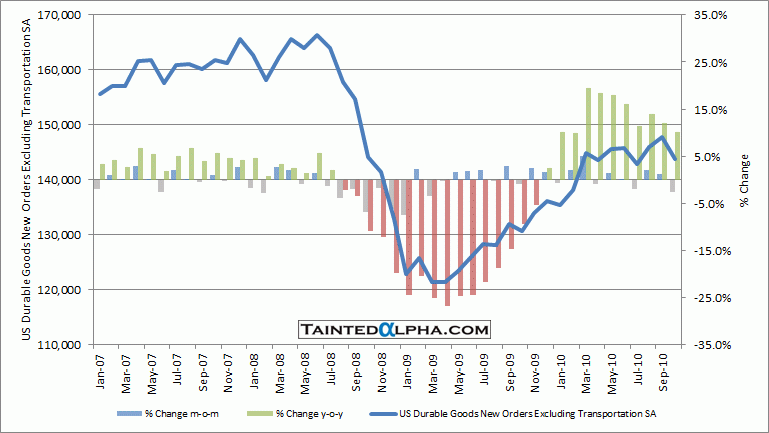 Transportation taken out the figure was a decrease of 2.7% vs. 1.3% rise in September (revised upwards from -0.8%). The consensus was at +0.6%.