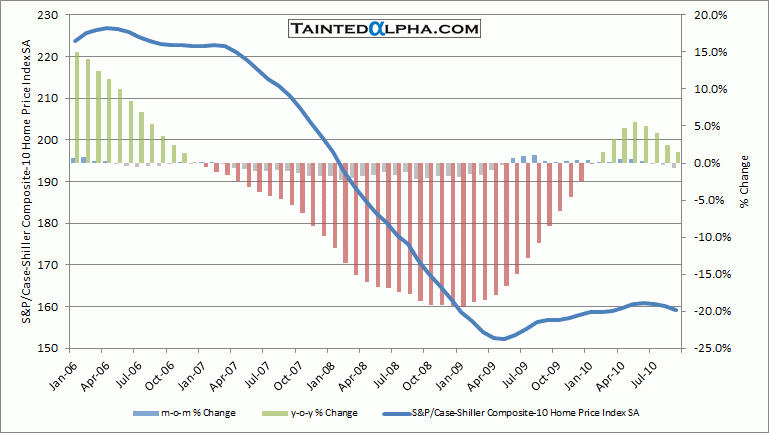 Seasonly adjusted S&P/Case-Shiller HPI 10 city composite fell 0.7% In September; On year level 10 city index is up 1.5%.