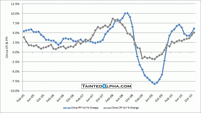 China Consumer Price Index was up 5.1% in November vs. 4.7% consensus. October reading was at 4.4%. China Producer Price Index was up 6.1% in November vs. 5.1% consensus. October reading was at 5.0%.