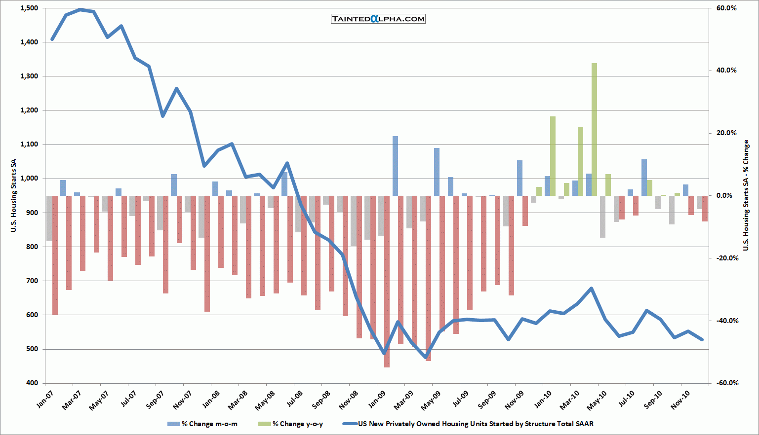 U.S. housing starts in December fell 4.3% to 529.000 vs. revised (2.000 lower) 553.000 November reading. The consensus was at 550.000. On year level U.S. housing starts are down 8.2%.
